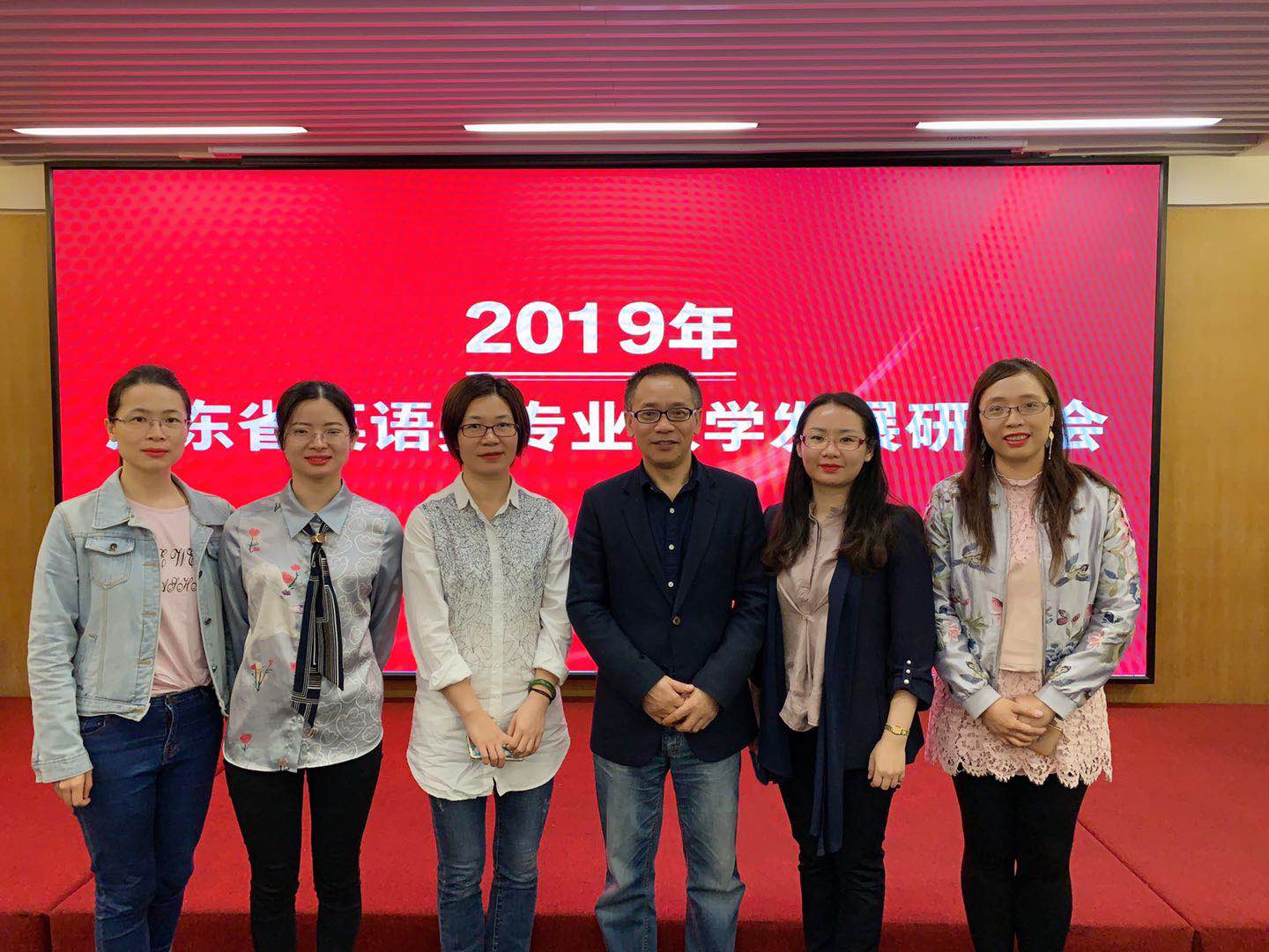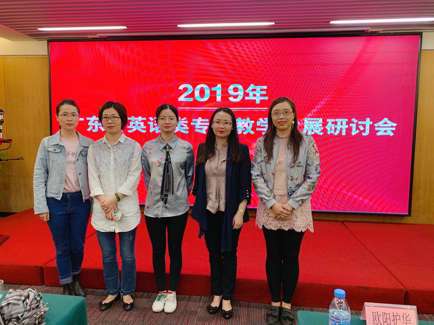 2019年4月13日,2019年广东省英语类专业教学发展研讨会在广州举行,太阳成集团tyc经理助理李文蓓、商务英语专业基础课教研室主任李明娇、国际贸易教研室主任陈绮雯、英语专业基础课教研室主任曹金蓉、翻译教研室主任黄越悦参加了本次会议。