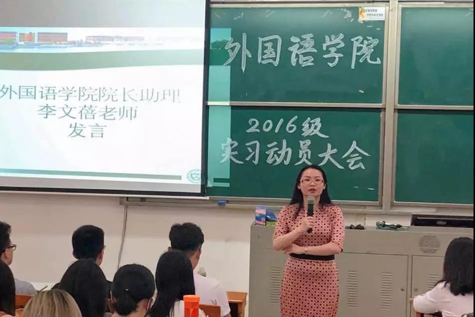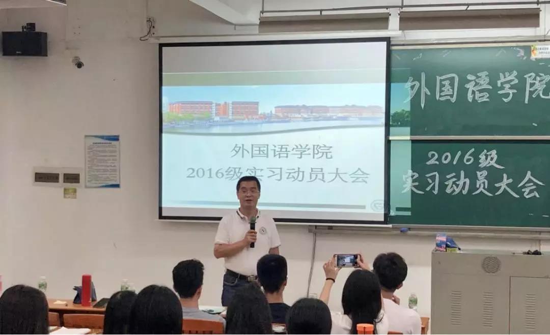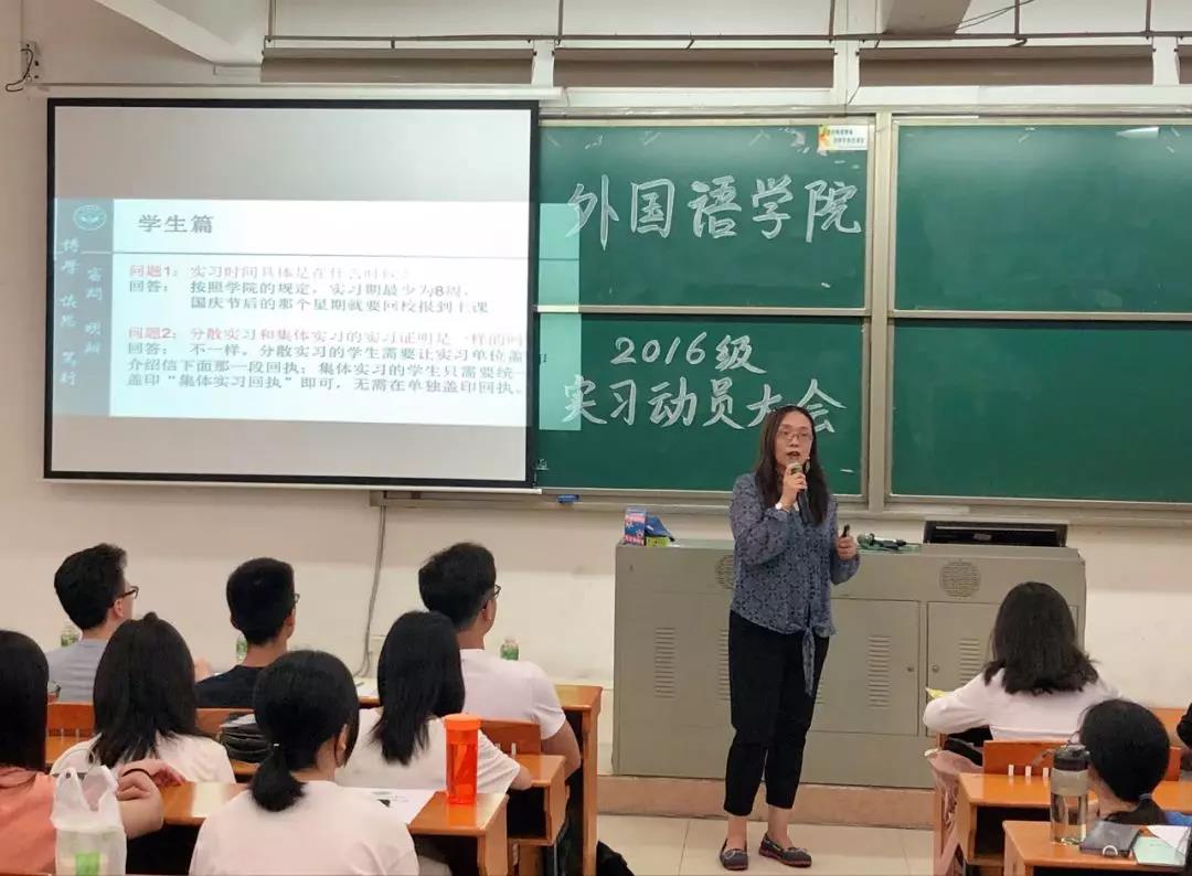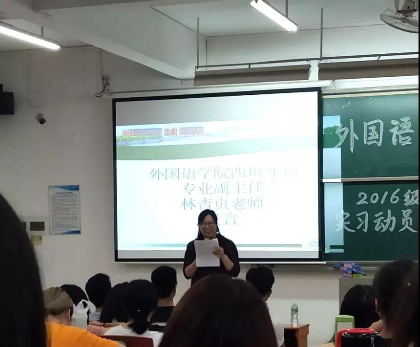 经过了三年的课堂学习后,2016级员工即将迈进毕业实习大关。为了让同学们更好地应对毕业实习,公司于2019年5月29日,在公司东莞校区定静楼②—A401召开了16级商务英语、西班牙语专业实习动员大会。太阳成集团tyc副经理李向奇、党总支副书记欧衍伽、经理助理兼商务英语专业副主任李文蓓、西班牙语专业副主任林杏贞、实践部主任陈绮雯、教务秘书何燕及实习指导老师洪茹出席本次大会,2016级商务英语专业和西班牙语专业全体同学参加大会。