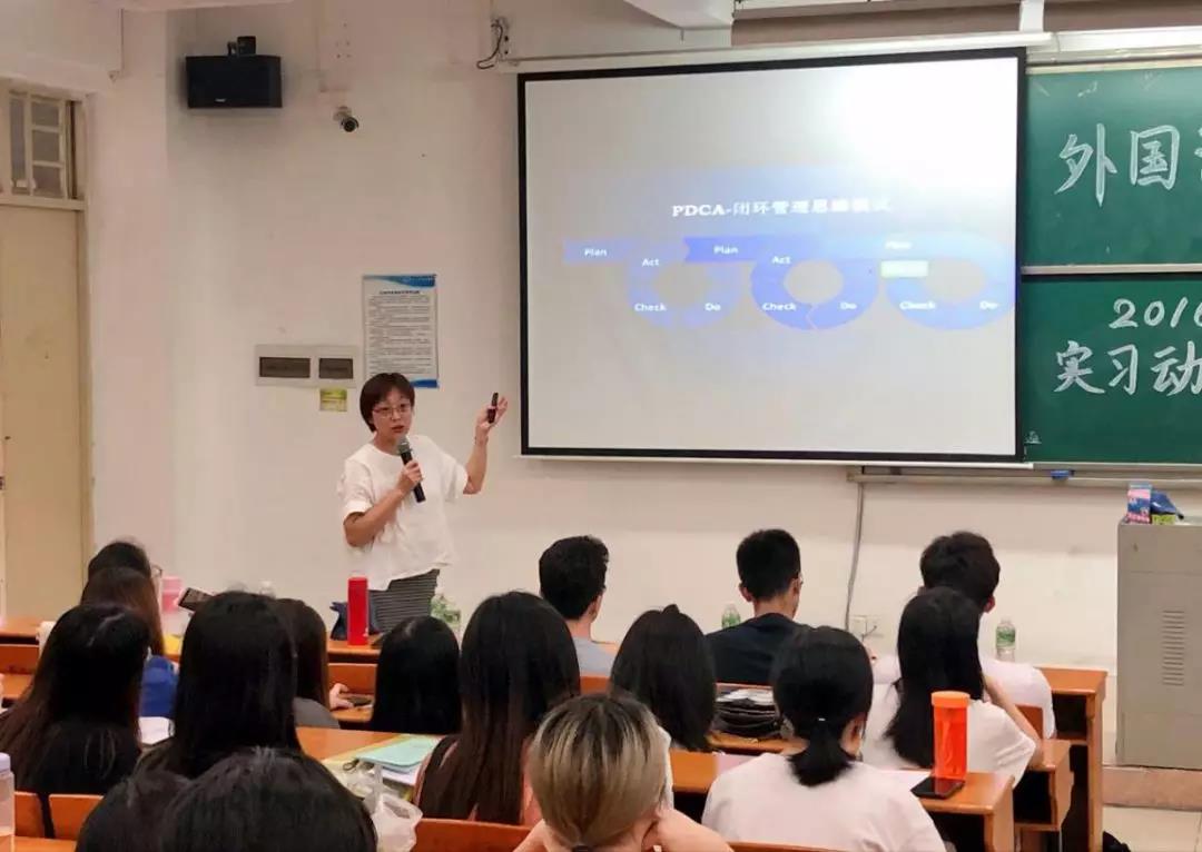 实习指导老师洪茹老师则通过PDCA-闭环管理思维模式阐述实习指导工作的内容。她讲到,老师和员工在实习期间要在Plan、Do、Check、Act四阶段中明确每一个短期目标。她还希望同学们能在实习中获得更多的一手经验,找到自己的发展方向,与世界产生互动。