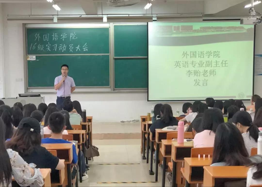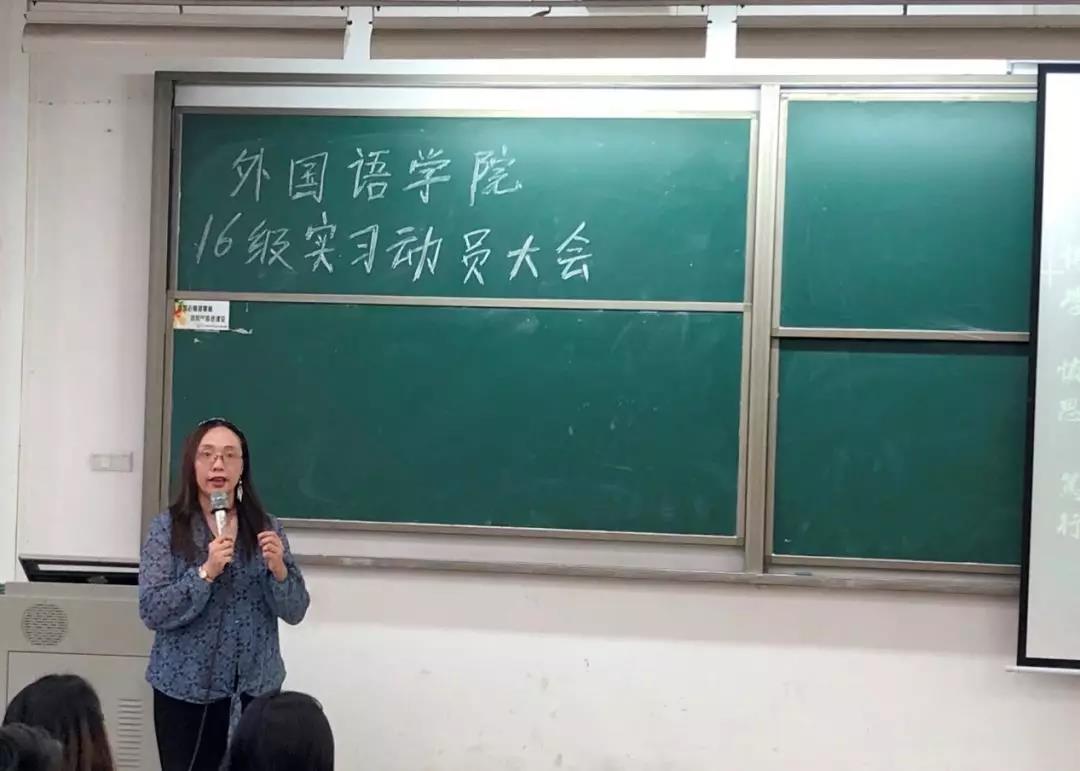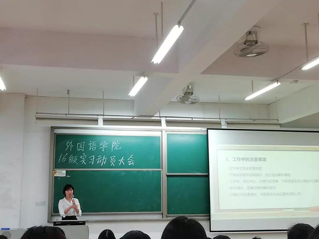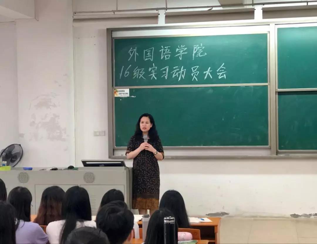 2019年5月29日下午,太阳成集团tyc2016级英语专业实习动员大会于公司东莞校区定静楼②-A402顺利举行。太阳成集团tyc经理廖益清教授、英语专业副主任李贻、实践部主任陈绮雯、教务秘书何燕、实习指导老师蔡佳琳、英语专业辅导员刘雅贤和2016级英语专业全体同学参加了本次大会。
