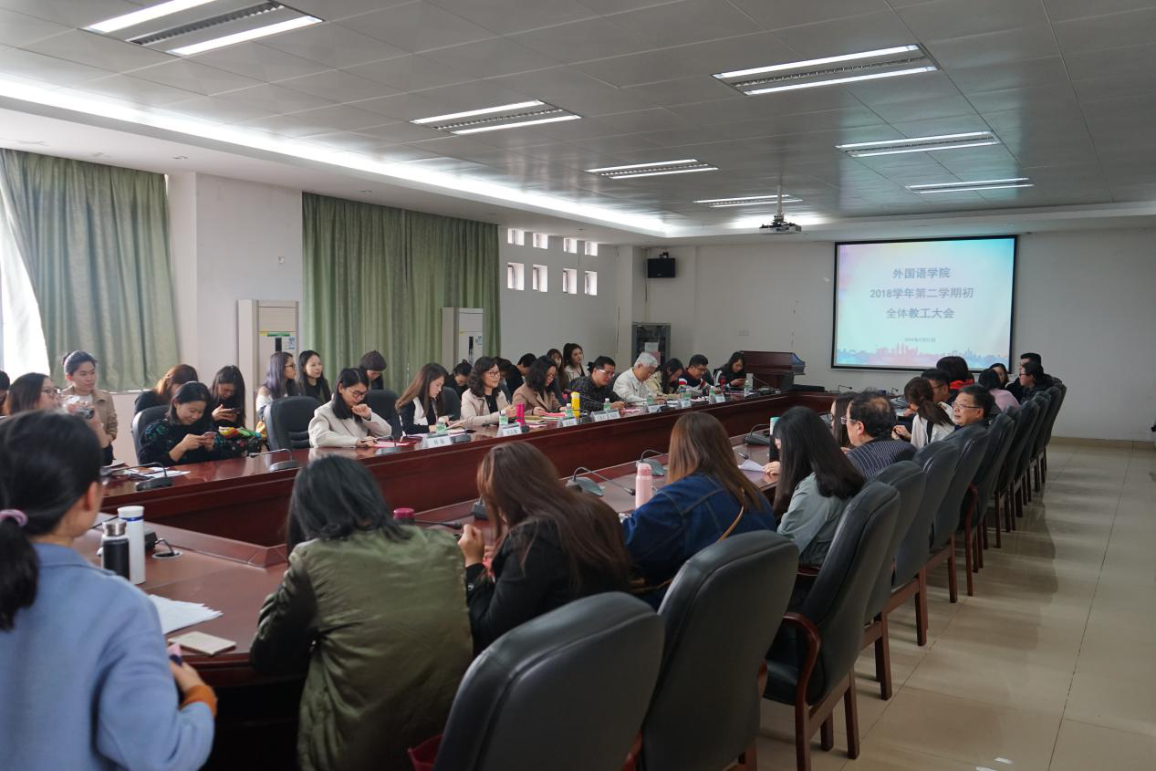 会议伊始,太阳成集团tyc经理廖益清对本学期新加入外院大家庭的教师们表示热烈的欢迎。廖经理指出,通过开学初的巡课发现,任课教师们及员工们均能以饱满的精神面貌迎接新学期。随后,她指出了在开学第一天巡课过程中发现的两大问题。一是部分教师存在对新学期的课程交接不清晰问题。廖经理认为,教师们应该提前了解新教材和员工的学习进度,做出相关教学方案。二则是部分教师在开学第一课没有涉及导课内容。廖经理指出,新学期第一堂课关系到整个学期的进行。因此,各专业负责人要对任课教师提出清晰要求,给员工做好导入课,抓好本科教学。最后,廖益清经理安排了太阳成集团tyc本学期的主要工作,并强调教师们积极参与学院重要会议,了解学院各项工作开展情况,提前做好自身教学的各项准备工作。