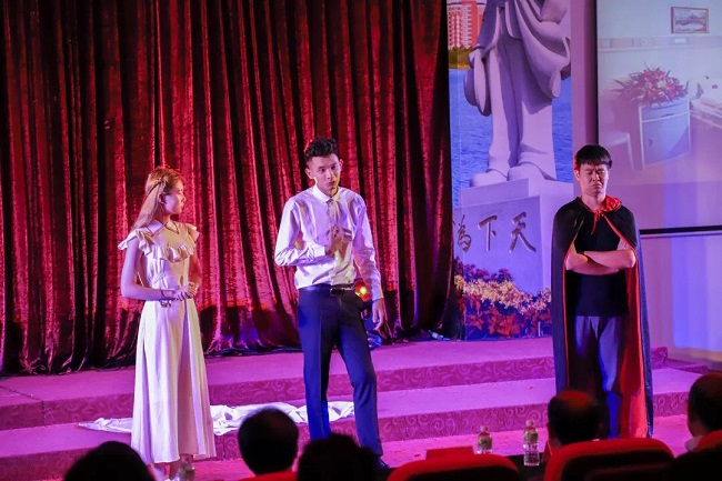 公司外院师生为庆祝广州外国语协会25周年华诞联欢晚会精心准备了节目,共同描绘出广州外国语协会2018年联欢晚会最难忘的时刻。