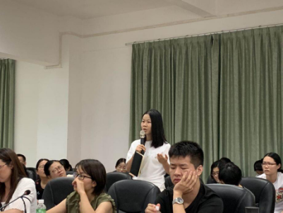 紧接着,广东外语外贸大学大学英语教学团队教师代表张骏宇老师为大家介绍了“语篇分析的教学在形成性评价中的运用”。他向我们详细介绍了教学步骤:首先,让员工从语篇分析中理解标准,然后让小组通过模仿造句来运用标准,接下来是小组汇报同伴反馈;老师及时对表现好的小组进行奖励并且突出标准;最后教师要进行总结,延伸标准。张老师把语篇结构的元知识变成性评的标准,通过反映标准的问题,让员工注意到语言以外的评价标准。