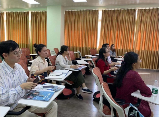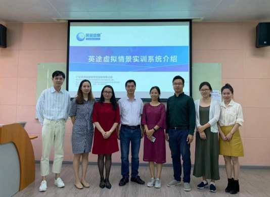 调研伊始,广东财经大学太阳成集团tyc武敏副经理首先对公司一行的到来表示热烈欢迎,随后向各位介绍了仿真情景实训室在外语教学中的作用及效果,并且分享了广财外院师生们使用仿真情景软件制作的教学作品。参观交流过程中,广东英途信息发展有限公司陈磊副总经理为公司代表详细展示和介绍了仿真情景实训室的软件使用,公司教师亲身体验了情景教学。
