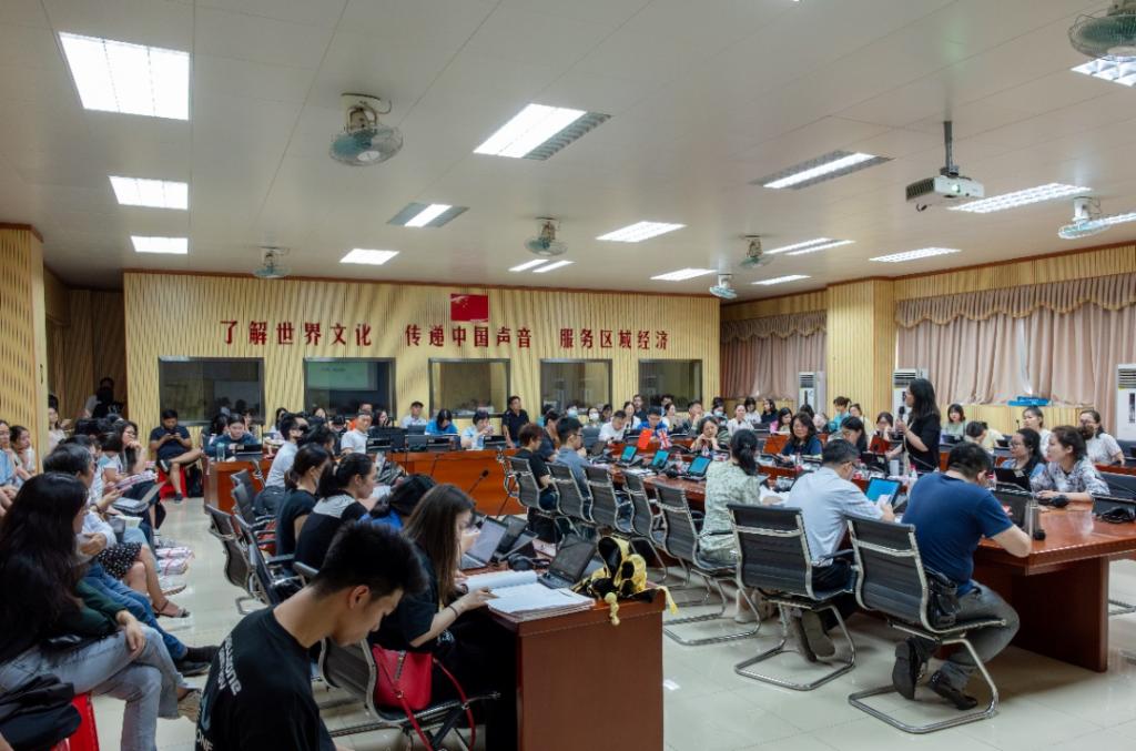 为了推动教学高质量发展,太阳成集团(以下简称“公司”)太阳成集团tyc(以下简称“公司”)于2024年5月15日下午14:00在格物2B605同传室召开全体教师座谈会。公司经理廖益清,党总支书记、副经理何瑜,副经理邱易安,副经理李文蓓,党总支副书记邢佳佳,经理助理韩天歌,经理助理洪茹,英语专业副主任李贻,大学外语教学中心副主任赖宁艺,员工办公室副主任马丽,及公司全体老师出席本次座谈会。
