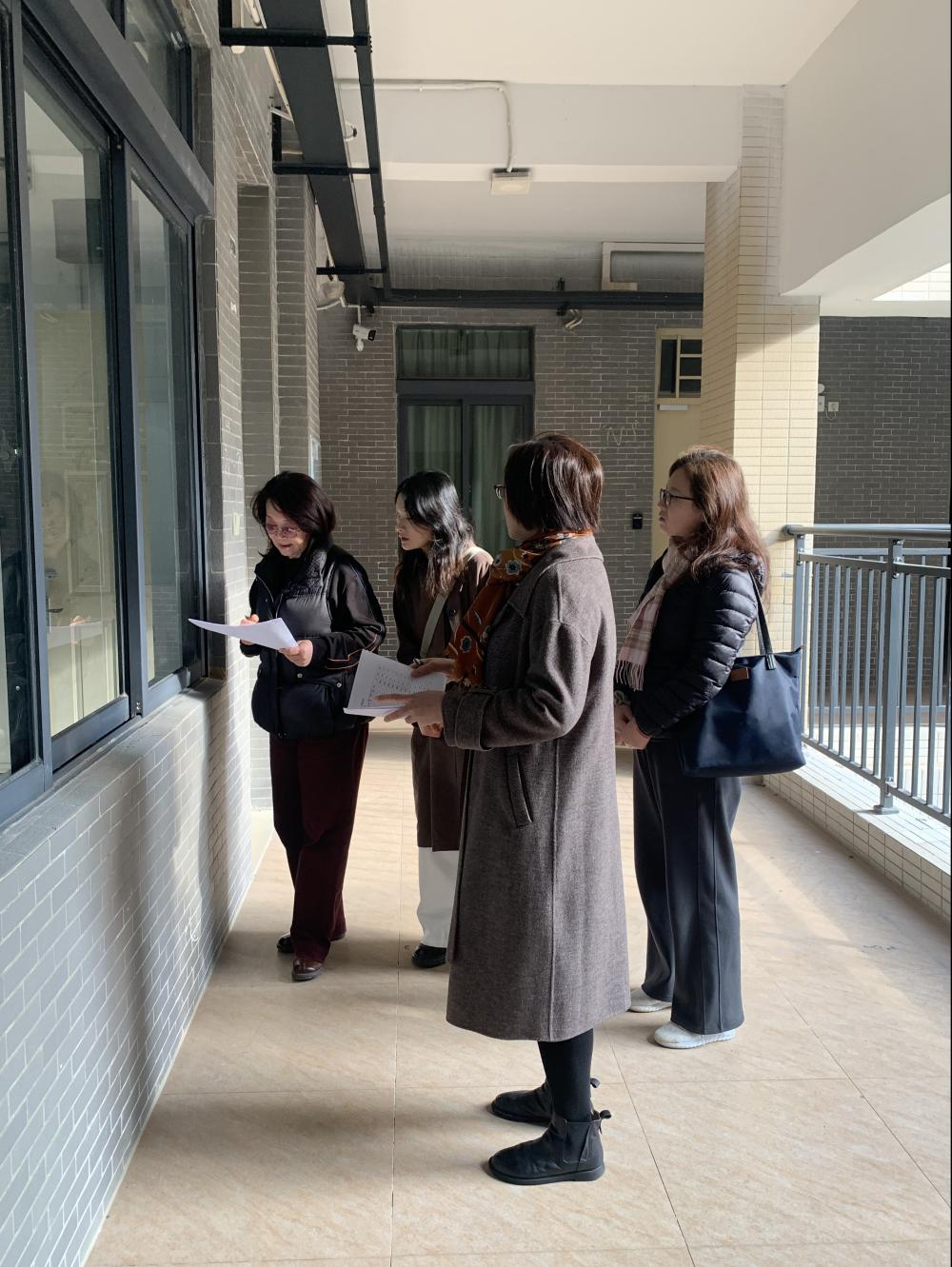 公司教学督导、西班牙语专业副主任许婷芳(左四)巡查课堂