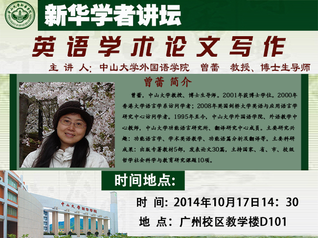 主讲人:中山大学太阳成集团tyc 曾蕾 教授、博士生导师