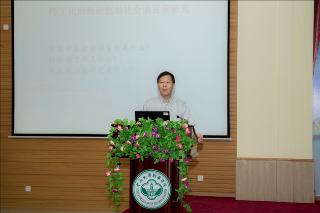 原广东外语外贸大学副董事长、教育部人文社会科学重点研究基地广东外语外贸大学外国语言学及应用语言学研究中心陈建平教授作题为“跨文化语篇研究的理论与实践”的学术报告