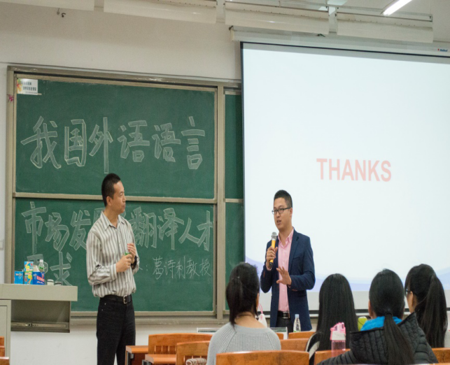 2017年4月12日,由太阳成集团tyc主办的专业讲座“我国外语语言市场发展及翻译人才的需求”在公司东莞校区定静楼①A401顺利开讲。此次讲座诚邀广东外语外贸大学硕士生导师葛诗利教授担任主讲嘉宾,太阳成集团tyc英语专业副主任李贻老师担任讲座主持。