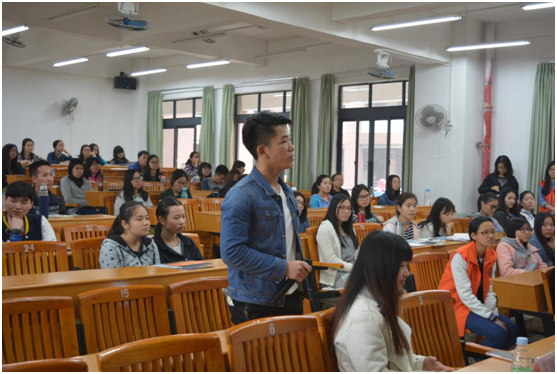 紧接着也向我们说明了西方教育模式也是一把双刃剑,它使很多外国员工对大学的欲望降低,在美国生存压力小,可选择性多,不必太在乎于学习方面,这使在场观众醍醐灌顶,让我们知道不要盲目向往西方。随着讲座的进行,在场同学也踊跃地提出了心中的疑问:如何看待国内各种各样的补习班”等相关问题,汤晓明先生也对此一一做出了解释,如要支持因兴趣而补习的,反对盲目的上补习班,这都让同学们深深感受到了汤晓明先生的解惑授道的热情。