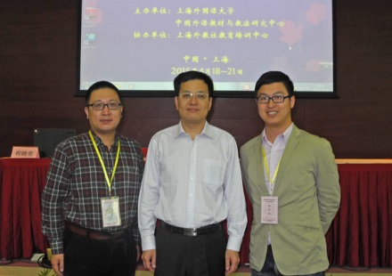 李贻(右)与北京师范大学英语学院经理程晓堂(中,主讲嘉宾)、