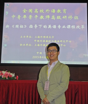 外语系(上海2015年4月20日),系主任助理李贻老师参加了由上海外国语大学和中国外语教材与教法研究中心举办的为期三天的全国高等学校外语教育中青年骨干教师高级研修班之“新《国标》指导下的英语专业课程改革”。参加本次会议之目的和主要收获在于通过学习研讨英语专业综合改革的方式和方法,探索创新独立学院英语专业应用型人才的培养模式、教学体系与建设相应的团队队伍,以提升本专业满足新时期国家社会需要、服务区域发展的能力。