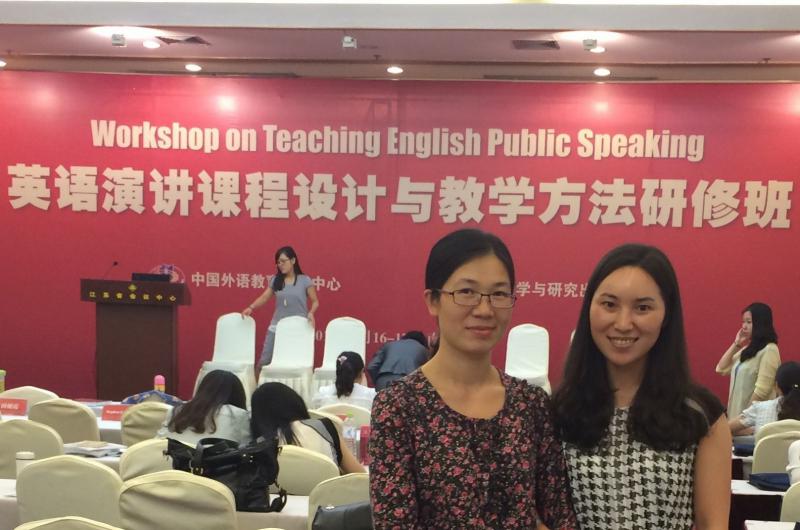 2015年5月16-17日,全国高等学校“英语演讲课程设计与教学方法”研修班在江苏省会议中心成功举办。作为高等学校外语学科中青年骨干教师高级研修班的重要组成部分,此次研修班秉持“推动科研、服务教学、坚持创新”的宗旨和Learning by Doing的理念。来自全国200多所高校300余名教师参加了研修班的学习,公司外国语言文学系青年骨干教师李明娇、袁侥蔚参加了此次研修班并顺利结业。