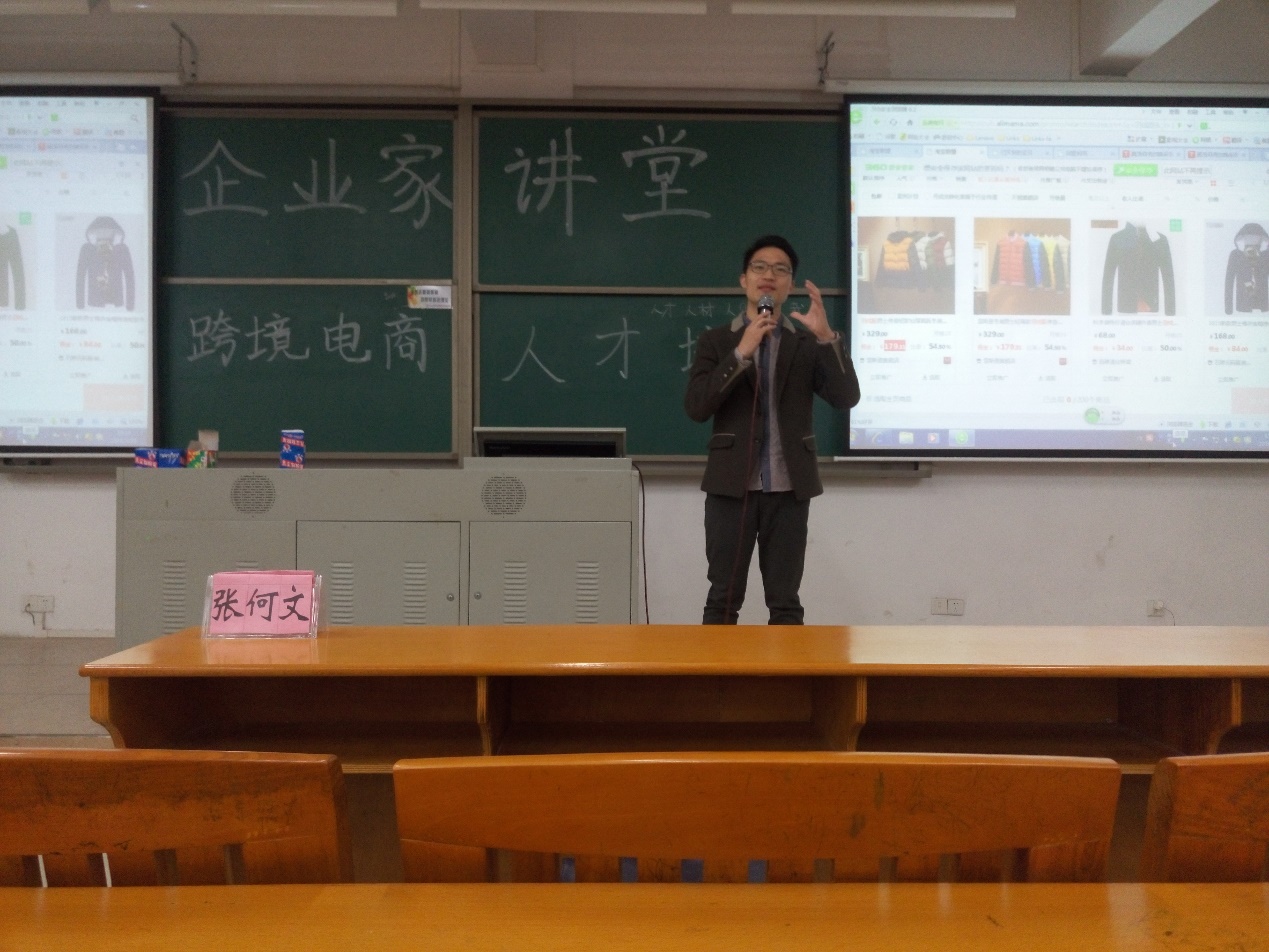 2016年3月16日(星期三)下午14:15分,企业家讲堂在定静楼2A301准时开讲。此次主讲嘉宾是张何文讲师,讲座内容主要是围绕跨境电商人才培养而开展。 图为张何文讲师