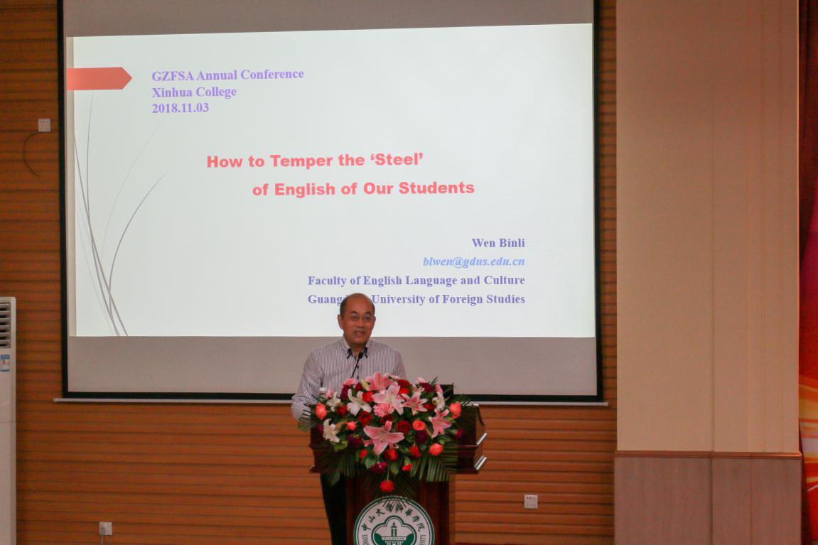 为与老师们更好地探讨中国外语教育现状及相关问题,2018年11月3日下午,广东外语外贸大学教授、博士生导师,英语语言文化学院经理温宾利教授在定静楼①-F403带来“英语专业员工的英语之钢当如何炼成”主旨演讲。