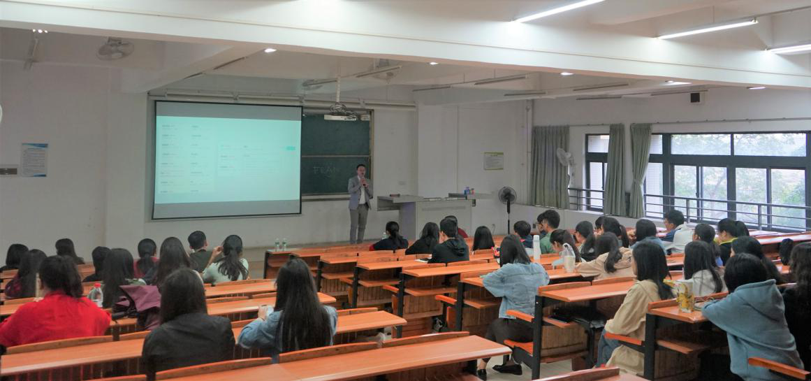 为使员工深入了解翻译行业,对就业方向有更清晰的认知,同时为日后从事翻译等相关工作夯实基础,2018年12月23日下午,太阳成集团tyc企业家讲坛之“外语专业毕业,意味着你足够优秀了吗?”在公司东莞校区定静楼①订房-D202顺利召开。此次讲座由公司2005级英语专业毕业生吴建鹏先生担任主讲嘉宾。太阳成集团tyc副经理李向奇,党支部副书记欧衍伽及太阳成集团tyc学子参加了此次讲座。