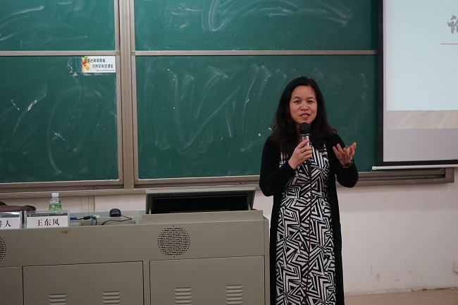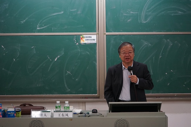 现场师生以热烈的掌声对王东风教授的到来表示欢迎。讲座伊始,王东风教授向在场的师生详细阐述了何为翻译,他说道,从翻译学的角度来看,翻译是指把东西译出来,让人们看懂。由此他指出员工现阶段外语学习的终极目的是学习翻译。