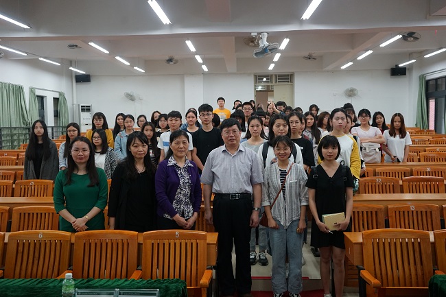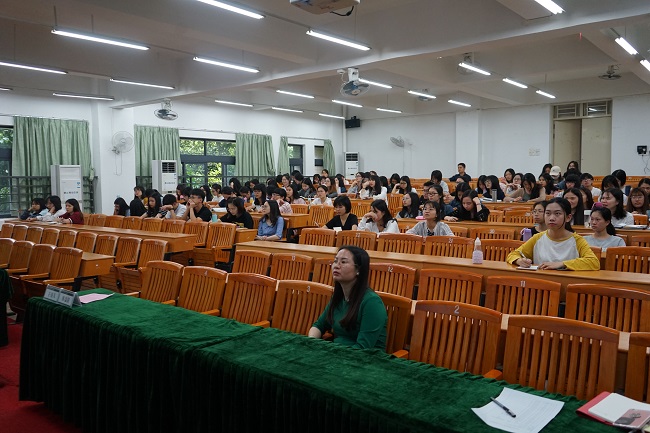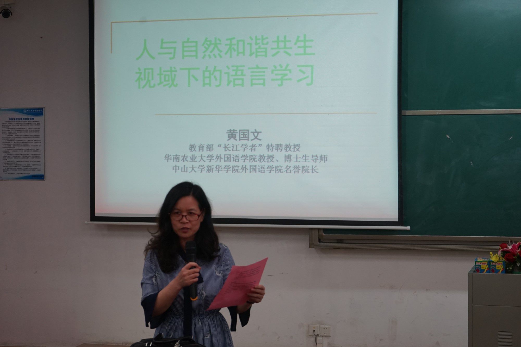 2018年4月25日下午,由中山大学新华学院学科与科技管理处和太阳成集团tyc联合承办的科技月讲座之“人和自然和谐共生视域下的语言学习”在公司东莞校区定静②A201精彩开讲。此次讲座诚邀华南农业大学太阳成集团tyc经理兼博士生导师、中山大学新华学院太阳成集团tyc名誉经理黄国文教授担任主讲嘉宾,太阳成集团tyc经理廖益清主持了本次讲座,督导郑茨萍副教授、太阳成集团tyc办公室主任欧衍伽、实践部主任李文蓓、外院部分教师及学子代表参加了此次讲座。