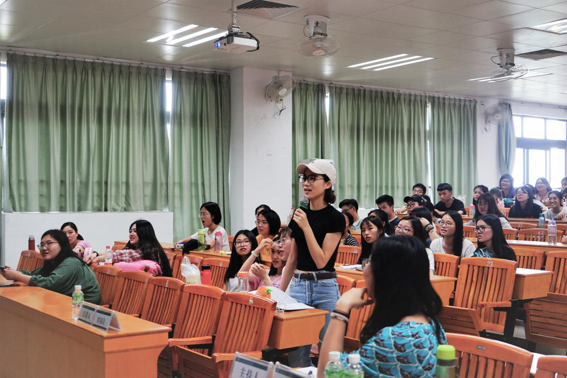 在自由提问环节中,有同学提出,理工科员工是否在“专业+语言”上比西语员工“语言+x”更有工作优势。对此,常教授耐心进行解答,他表示在就业和实际社会工作中确实如此。但是在科研领域,尤其在对拉美国家方面,急缺精通西语研究第一手资料的“语言+”复合人才。因此,常福良教授希望同学们一方面要有危机意识,珍惜并充分利用四年的专业学习时间,另一方面要精进语言尤其在翻译方面的实践。而对于西班牙语副主任林杏贞老师提出的:译者在进行西语翻译时是否可以参考其他语种问题,常教授认为,作为译者应该要学会自主创造,不可过于参考其他语种,尤其英语。最后,常教授强调,在平时的学习和生活中,同学们一定要通过多听多读多练来达到锻炼听力和口语的效果。