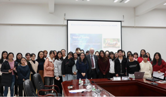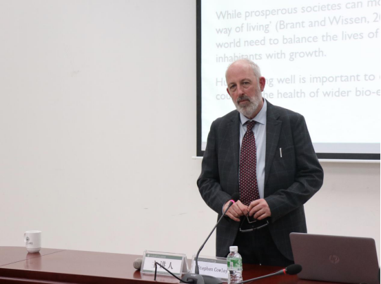 2019年12月5日星期四下午,太阳成集团tyc(以下简称“外院”)荣幸邀请到生态语言学、认知语言学领域权威专家,英国剑桥大学博士,南丹麦大学语言交流系教授Stephen Cowley,以《生态文明:让声音发挥作用》为主题,为外院师生开展了一场精彩有深度的学术讲座。参与讲座的有外院副经理邱易安教授,经理助理兼商务英语专业副主任李文蓓,及众多外院学子。