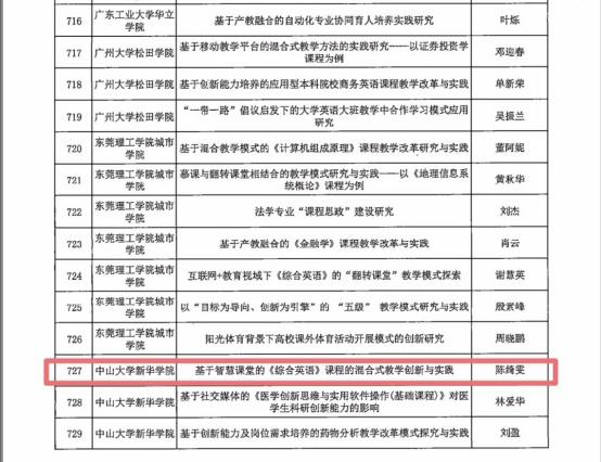 根据广东省教育厅发布的《广东省教育厅关于公布2019年广东省高等公司产品改革项目立项名单的通知》,公司陈绮雯老师的“基于智慧课堂的《综合英语》课程的混合式教学创新与实践”成功立项