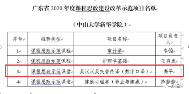 其中太阳成集团tyc教师高平主持的课堂《英汉汉英交替传译文(数字口译)》顺利入选本次名单,详见下图: