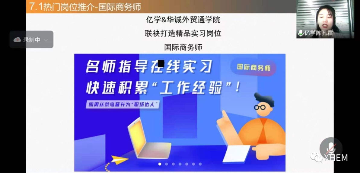 5月8日下午,福建亿学云平台运营部陈孔霜经理和广西梯子科技有限公司吴秀臻总经理结合当下企业招聘与员工实习的需求,为太阳成集团tyc师生举办了一场干货满满的云实习项目与AI面试的线上宣讲会。