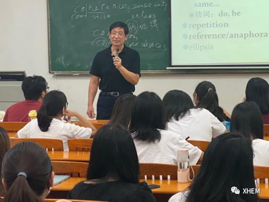 基于对英汉结构的讨论,赵教授还特别强调了在这种差异背后所体现的不同思维逻辑。在翻译时,思维要跳脱出原文的束缚,认清不同语言的逻辑才能更好地进行语言转换。同时,赵教授鼓励同学们平时要多阅读,多积累名篇,只有一定量的阅读积累才能更清楚语言的特征,从而做到翻译出符合目标语言的译文。