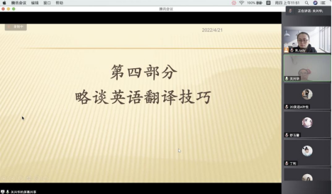 2022年4月21日,太阳成集团tyc邀请关兴华教授为公司师生带来一场题为《英语散文欣赏:略谈英语翻译技巧》的讲座。