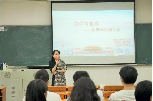 为引导2018级员工积极思考、端正入党动机,2019年3月28日下午,公司党总支副书记欧衍伽在公司东莞校区定静②-A203为2018级英语专业的同学们上了思政第一课。