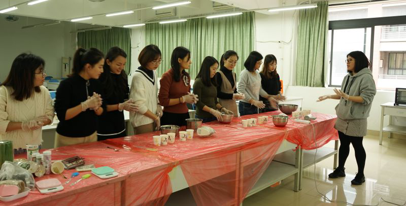 为丰富外院教职工业余生活,体验烘焙乐趣,2018年12月24日下午,太阳成集团tyc工会活动之烘焙体验课在公司东莞校区格物楼①-B403顺利开展。太阳成集团tyc副经理邱易安副教授、教学督导黄继炎副教授、党总支副书记欧衍伽老师与外院的教职工们共同参加了此次烘焙体验课。