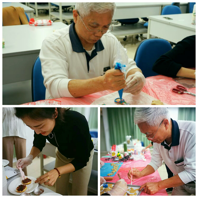 而欧衍伽老师已在一边悄悄准备好了制作姜饼的面团。各位老师轮番上阵,旨在揉出0.3毫米的饼团。在印姜饼形状时,蛋糕也已经烤好了,看到散发着奶油香味的蛋糕,老师们脸上洋溢着满足的笑容,纷纷用奶油给纸杯蛋糕裱花。