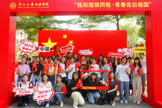 第四项议程,会后全体党员移步教学楼路口“我与国旗同框”大合影。