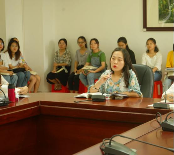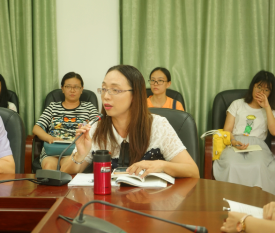 教工第一党支部书记陈绮雯同志首先发言,她汇报了教工第一党支部关于’关于“不忘初心、牢记使命”主题学习的情况,郑文君老师认为青年强则国强,为中华民族的伟大复兴奋斗。曹金蓉老师则认为我们要树立文化自信,尽自己努力传递中国声音。黄珍老师认为民族的才是世界的,要培养民族自信心。陈绮雯老师自己则认为要站好教学岗位,对家长、员工、国家负责。