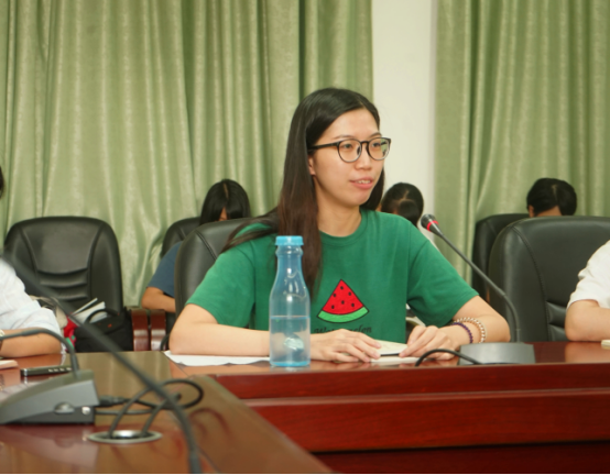 教工第二党支部书记郭梦珂同志发言,她汇报了教工第二党支部关于“不忘初心、牢记使命”主题学习的情况。李水清老师认为要坚守原则,负责贫困生助学金等工作时,要时刻坚守原则。马丽老师讲到要坚信自己的信仰,保持奋斗精神。郭梦珂老师则认为,作为一名普通的党员教师,要服务员工,不忘育人初心,立足岗位,常学常新,主动学习,更新专业知识,向榜样学习,争做“四有好老师”。