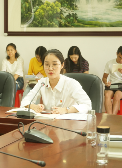 员工党员发展对象代表徐加奇发言,她讲到自己通过学习党的知识让她成为发展对象很骄傲,将会牢记为人民服务的宗旨,报效祖国的使命。