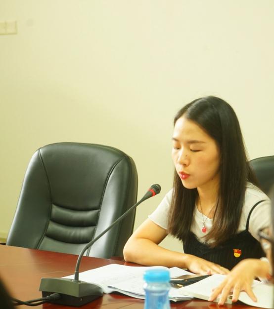 第一项议程,欧衍伽副书记宣读中共中山大学新华学院委员会开展“不忘初心、牢记使命”主题教育实施方案的文件。并详细介绍了现阶段以及接下来关于公司党总支及各支部关于“不忘初心、牢记使命”主题学习的具体方案。共分为六个方面:分别是精心筹划部署、抓好学习教育、深入调查研究、认真检视问题、狠抓整改落实、开好专题民主生活会和专题组织生活会。欧书记特别提到,各党支部一方面要不断增强党性,提高素质,多展开支部会议。各支部可以通过调研,深入调查形成调研报告,抓好为19级新生开讲党性教育的契机开展主题教育活动。另一方面,各支部的组织生活会可结合各种形式的学习来具体落实,如组织师生党员参观中共三大会址,重温党史。国庆期间,党支部成员可以精选爱国主题影片观看,集中观看国庆阅兵仪式,个人自学“学习强国”上实时更新的要闻,切实提高理论水平并在实践中加深党性觉悟。