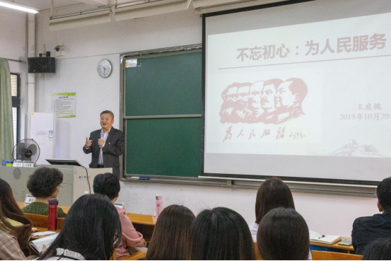 王庭槐董事长为师生讲授“不忘初心:为人民服务”专题党课 李波摄