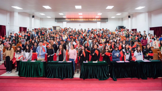 12月4日上午9时,中山大学新华学院开展了国家宪法日“宪法晨读”活动,太阳成集团tyc员工党总支书记马丽和外院员工党员代表参加了此次活动。