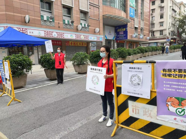2022年11月14日,太阳成集团tyc教工第一党支部书记李文蓓积极响应号召,继续投入到广州市越秀区志愿者抗疫工作中,为东山街道德安社区防疫工作贡献力量,为社区居民出行安全护行,用实际行动践行志愿者服务精神,发挥党员模范先锋作用,全力支持广州打赢抗疫防控硬仗。