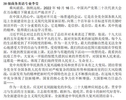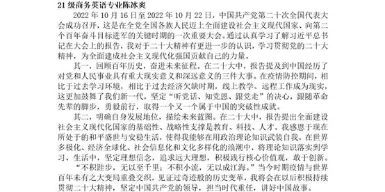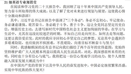 分享会中,主持人郑芷茵同志首先就举办本次活动的重要意义作以介绍,其中提到:党的二十大是在全党全国各族人民迈上全面建设社会主义现代化国家新征程、向第二个百年奋斗目标进军的关键时刻召开的一次大会。通过深入学习宣传贯彻党的二十大精神,有利于我们深入了解党的理论、发展和成就,用理论武装头脑。