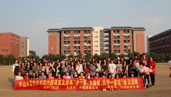 新学期,新血液,新希望。为了增进系团总支和系员工会之间的联系,加深彼此的沟通与交流,外语系团总支、系员工会结合外语系的自身特色,举办了以“小干事,大凝聚,团学一家亲”为主题的团学培训活动。培训于2014年11月16日下午14:30在东莞校区足球场拉开帷幕。