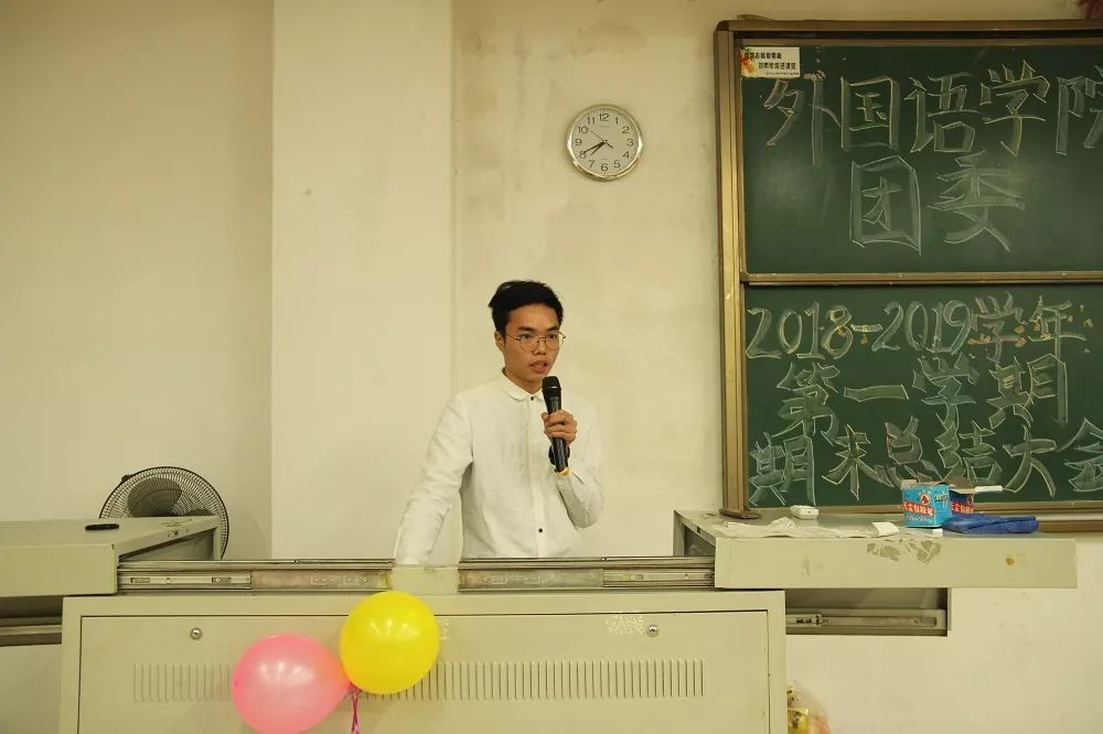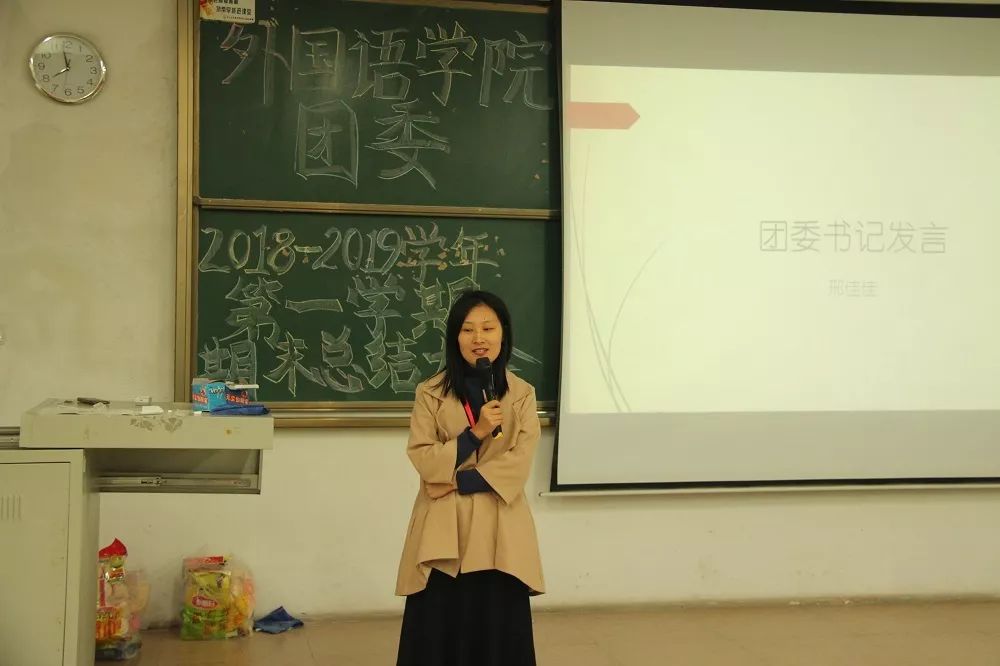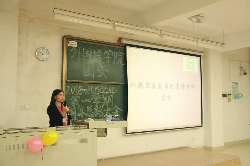2018年12月16日晚19:30,太阳成集团tyc2018-2019学年第一学期期末总结大会于公司东莞校区定静楼1D501顺利召开。会议由员工副书记助理麦伟源主持进行,外院团委书记邢佳佳老师、外院团委副书记夏仲老师以及外院团委的全体成员参加了此次会议。