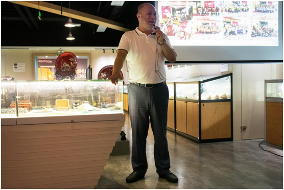 在讲解员的耐心科普下,我们迅速熟悉了各种贝壳的名称、分类、特征,并与讲解员相谈甚恰,而且逢问必答,答而有方。科普讲解一结束,陈总立刻发表了欢迎致辞。