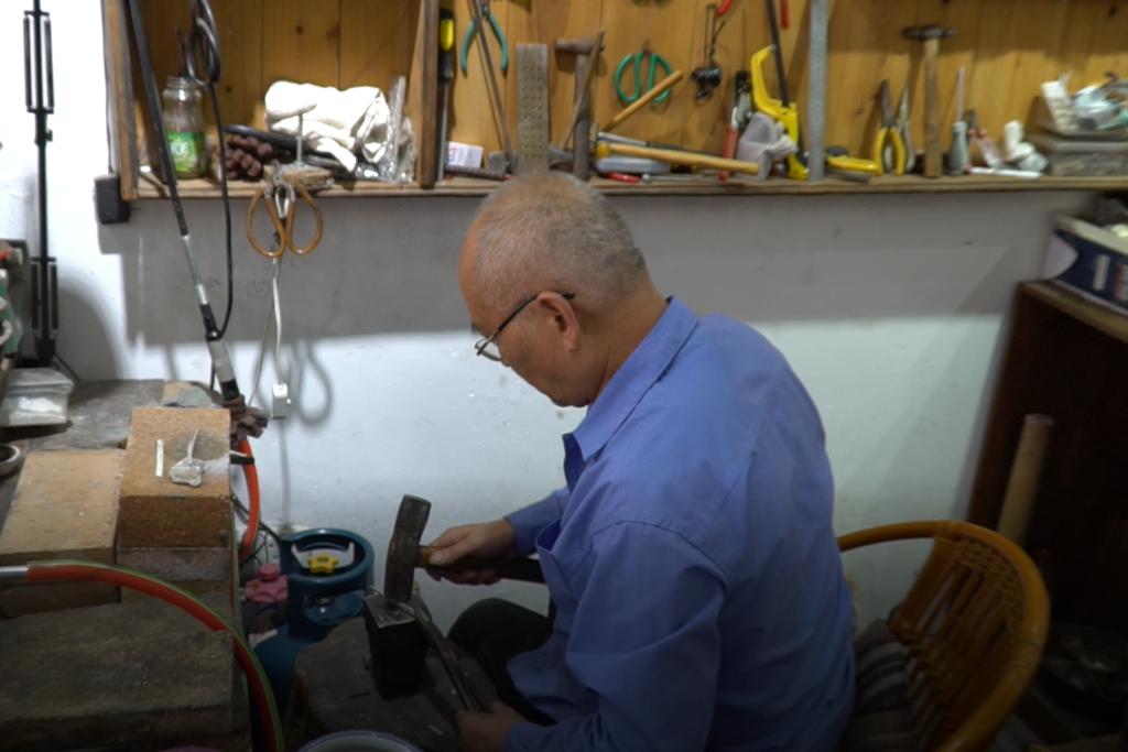 魂融合为一体,锤子与银条碰撞的声音余音绕梁,体现的是银饰传承人的独具匠心的精神。