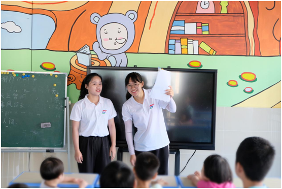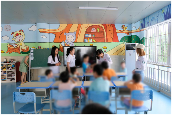 我们围绕阳江漆器在海上漂流百年后无腐无损的本土传说去展开讲述,在此过程中,小朋友们热情、活泼地与我们进行互动,积极抢答。他们在获得一些奖励后,露出了天真灿烂的笑容。小朋友们在玩耍中学习,提高了孩子们学习的兴趣。队员们和小朋友们相处得很开心,其乐融融。这种积极和谐的画面,让我们感到十分的温馨。