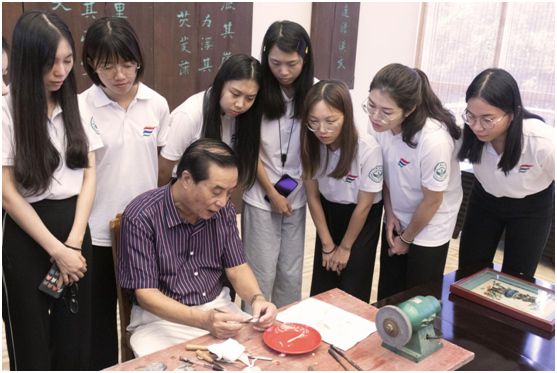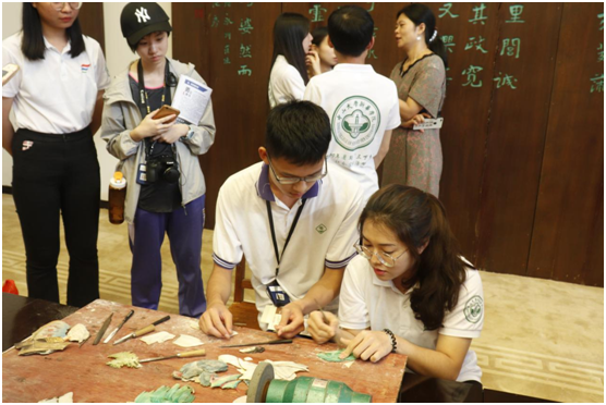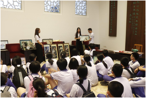 At 4 p.m., we welcomed the students of Guangzhou No.16 Middle School, and held a mini-lecture to introduce some knowledge about shell carving.