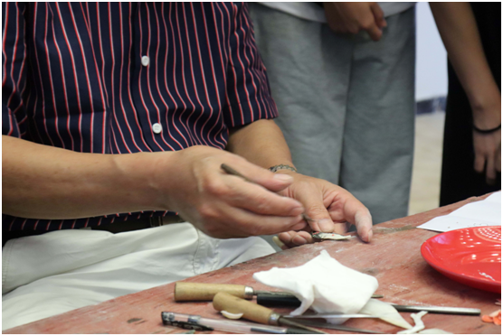 The elucidation of manufacturing process that today's mini-lecture was not only a skill, but its(shell carving's) practice was also an interesting and vivid minor operation.