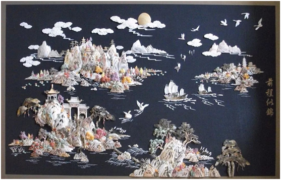 Above all, here comes the introduction of a shell carving painting named Guest-Greeting Pine, whose birthplace is Haimen town, Shantou City in Guangdong Province.