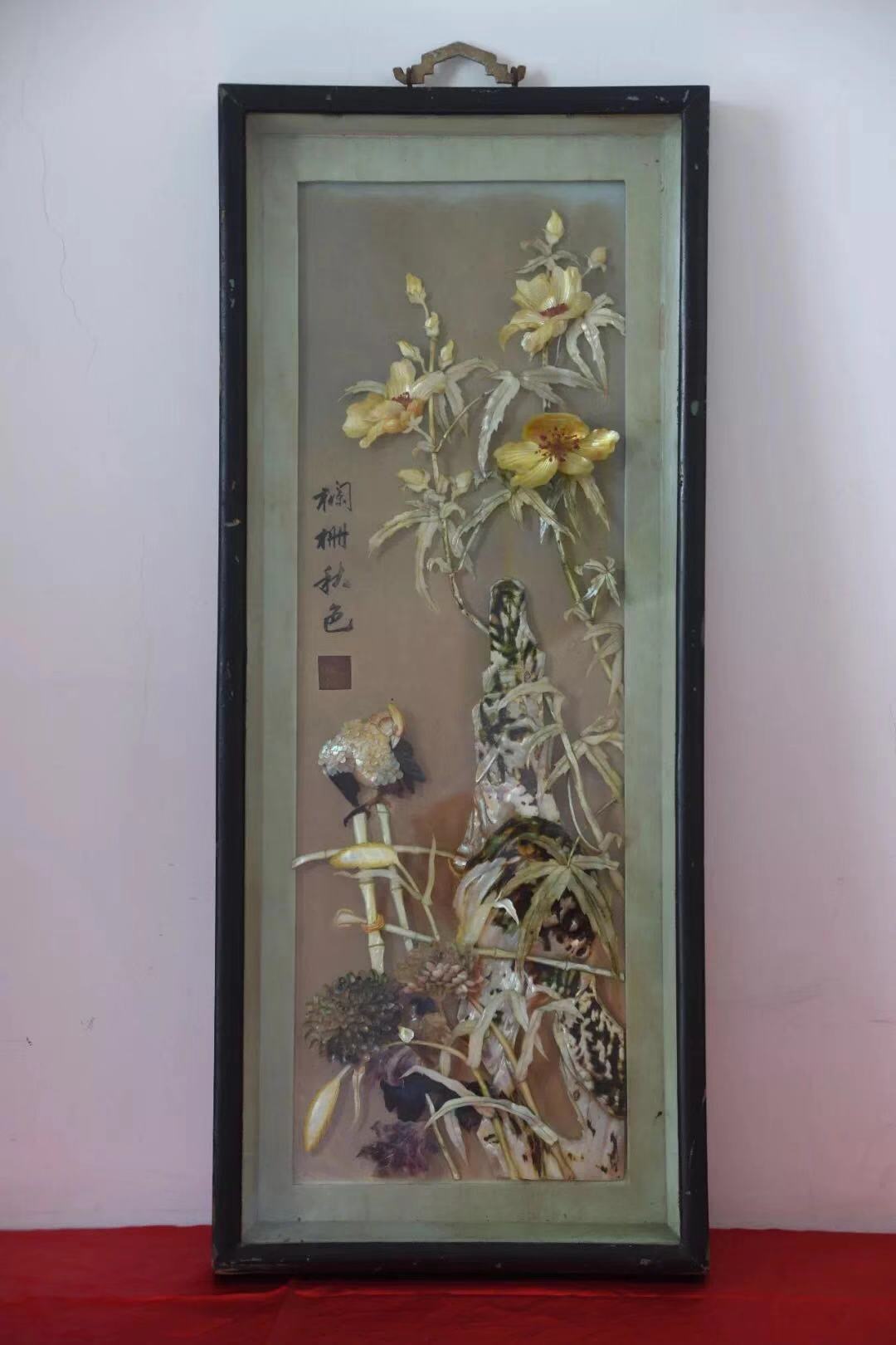 The difference between it and Chaoshan shell carving is that it's base is mainly black. There are diverse themes in these four shell carving works.